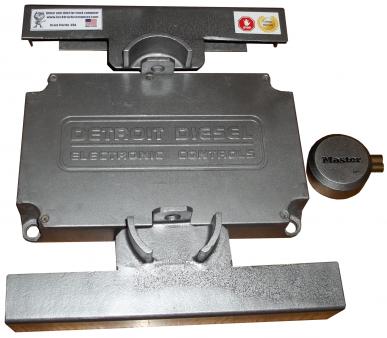 A super strong metal armor, high locking security system, which prevents access to the nuts that hold the Detroit Diesel Series 60- 12.7 Liter. Computer of the trucks to prevent them from being stolen.
