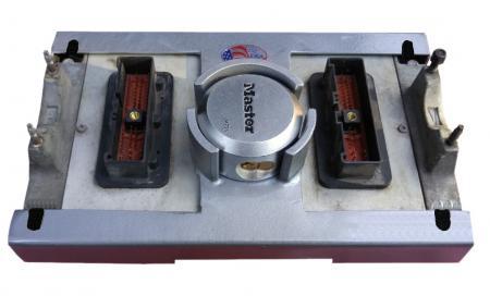 A super strong metal armor, high locking security system, which prevents access to the nuts that hold the Detroit Diesel Series 60 Computer of the trucks to prevent them from being stolen.